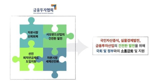 금융투자협회는 국민의 자산증식과 자본시장 발전에 필요한 법률 개정안들이 21대 국회에서 통과되기를 희망한다고 밝혔다.
