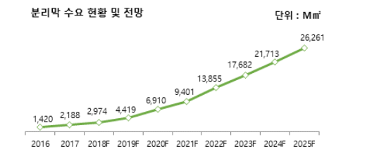 2019년 4월 SK이노베이션에서 자회사로 분사한 이후 습식 분리막 기준 글로벌 탑 수준의 사업자로 자리매김했다는 부연이다. 현재는 글로벌 전기차 시장의 폭발적 성장에 따른 이차전지 수요에 대응하기 위해 충북 증평, 중국, 폴란드 등 국내외 신증설을 활발히 추진하고 있다.