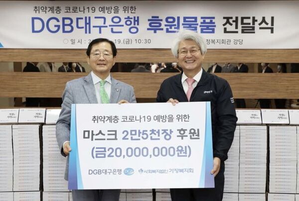 가정복지회는 지난 1970년 '소외되고 무너진 가정을 다시 세우자'는 뜻으로 지역민들이 설립한 풀뿌리 민간사회복지기관이다. 올해로 창립 50주년을 맞아 다양한 기념사업을 추진하고 있으며, 지역대표기업 DGB대구은행은 지역 취약 가정 코로나19 예방을 위한 마스크 구입 지원을 위해 본 후원금을 전달했다.