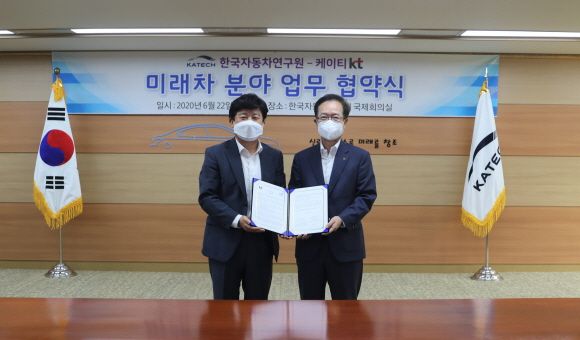 KT는 한국자동차연구원과 자율주행 핵심기술 연구 등 미래 자동차 분야에 대한 업무협약(MOU)을 체결했다고 23일 밝혔다.