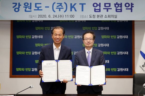 KT는 강원도와 24일 강원도청에서 빅데이터 기반의 도민 만족 행정 활성화를 위한 업무협약(MOU)을 체결했다.