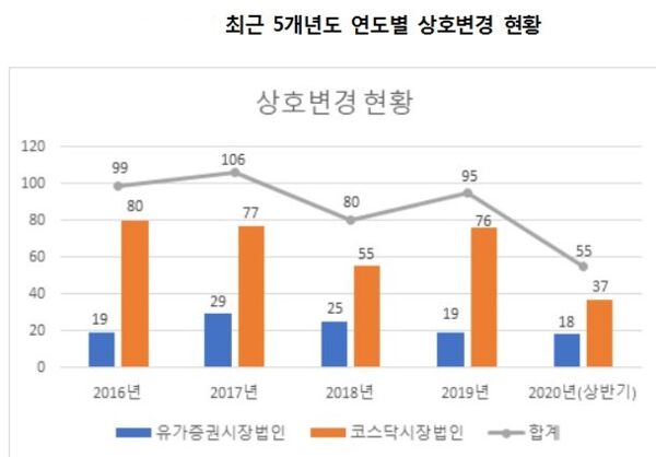 올해 상반기 총 55개 상장사가 상호를 변경한 것으로 조사됐다.