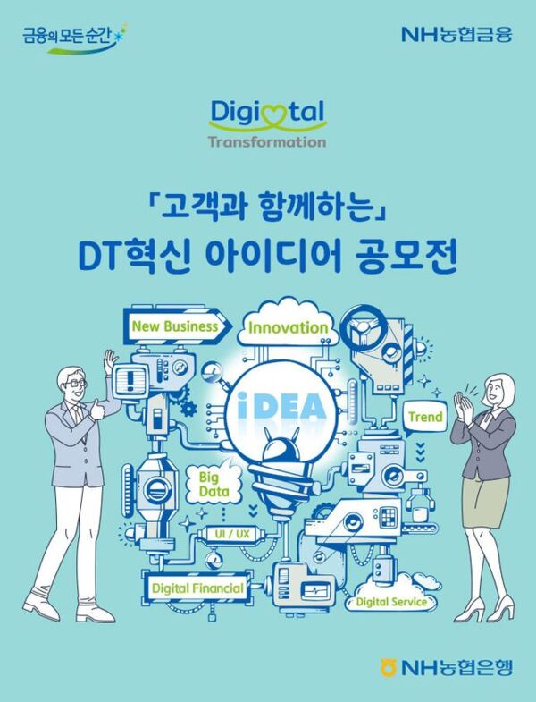 NH농협은행은 고객중심 디지털금융 서비스 제공을 위하여 고객과 함께하는 'DT 혁신 아이디어 공모전'을 7월 6일부터 31일까지 진행한다고 5일 밝혔다.