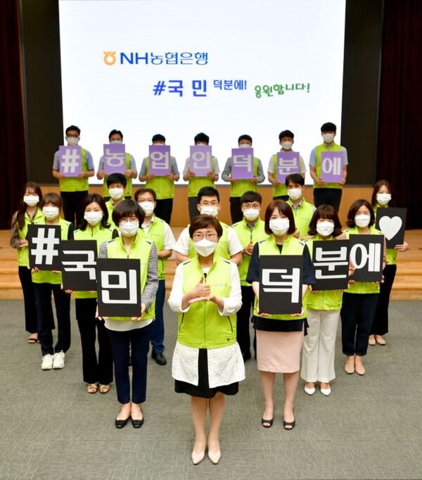 NH농협은행 여신심사부문은 6일 서울 중구 NH농협은행 본사에서 코로나19를 함께 이겨내고 있는 국민에게 존경과 감사, 응원의 메시지를 전하는 '덕분에 챌린지'에 동참했다고 7일 밝혔다.