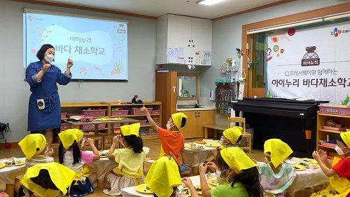 CJ프레시웨이가 유치원과 어린이집 5~7세 유아를 대상으로 '아이누리 바다채소학교'를 운영하며 학부모와 아이들로부터 호응을 얻고 있다.