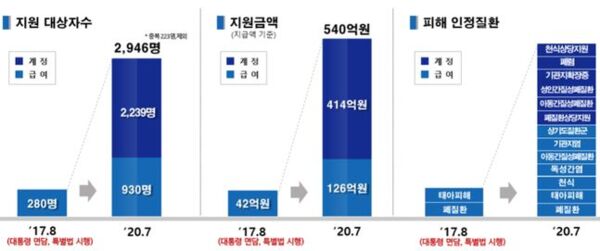 이로써 특별구제계정으로 지원받고 있는 2239명을 포함해 ‘가습기살균제 피해구제를 위한 특별법‘에 따라 지원을 받는 피해자는 2946명(중복자 제외)이 됐다.