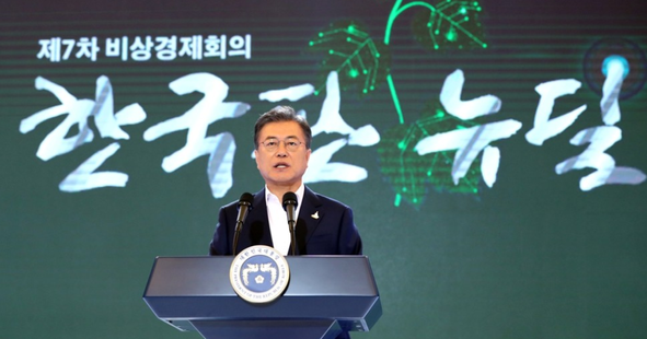 14일 문재인 대통령은 한국판 뉴딜을 '대한민국 대전환' 선언으로 명명하며 새로운 100년의 설계라고 강조했다.