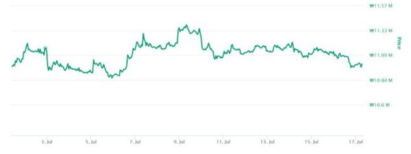 17일 코인마켓캡에 따르면 비트코인은 이번 달 들어 줄곧 1100만원선을 횡보하며 적은 변동성을 보이고 있다. 이번 달 비트코인의 가장 높은 가격은 약 1138만원에 거래됐고, 최저가로 이루어진 거래는 약 1086만원 선이다.