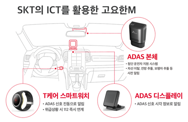 SK텔레콤은 운행 안전성을 높이기 위해 청각 장애인 전용 ADAS(첨단 운전자 지원 시스템)와 T케어 스마트워치를 연계해 ‘고요한 M’ 전 차량에 탑재했다.