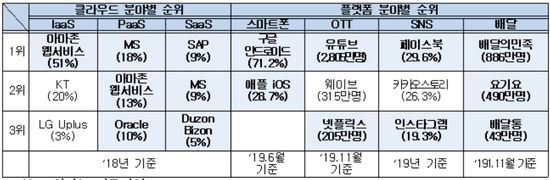 한국 ICT산업은 반도체 및 장비 등 ICT 제조업에 비해 SW·플랫폼 등 서비스업 경쟁력이 떨어진다는 분석이다. 클라우드 시장은 고성장이 예상되는 유망산업이지만, 국내 시장은 이미 해외 글로벌 기업이 선점하고 있다. 국내 분야별 플랫폼 시장도 외국 기업이 점령했다.
