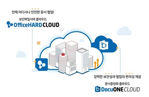 오피스하드는 문서 통합 관리, 대내외 문서 공유, 형상관리 등 협업 환경을 제공하는 서비스다. 시간과 장소의 제약 없이 권한과 보안 설정 기능으로 안전하게 자료를 저장, 전송, 편집, 공유할 수 있는 솔루션이다. 또 파일 직접 편집, 보안검사 기능도 갖춰 랜섬웨어를 비롯한 악성 위협에 취약한 기업의 데이터 보안을 책임진다.