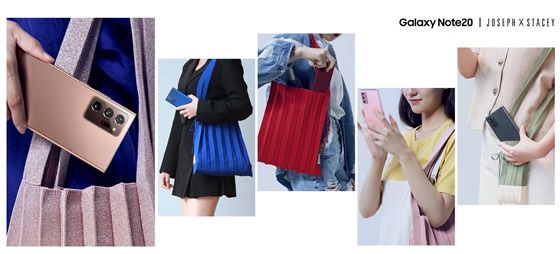 삼성전자와 조셉앤스테이시는 '갤럭시 노트20'를 더욱 멋지게 가지고 다닐 수 있는 전용 가방도 선보인다. 조셉앤스테이시만의 아이코닉한 디자인과 비비드한 컬러 감성의 '플리츠 니트백'을 전에 없던 휴대폰 전용 사이즈로 제작하고 '갤럭시 노트20'의 미스틱 컬러에서 영감 받은 색상을 더했다.
