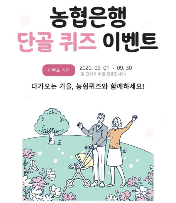 NH농협은행은 농협은행의 모바일 플랫폼인 NH스마트뱅킹과 올원뱅크에서 9월 1일부터 30일까지 한 달간 '9월 농협은행 단골퀴즈 이벤트'를 실시한다고 1일 밝혔다.