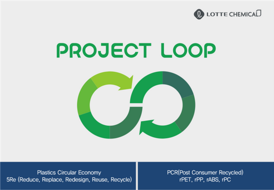 롯데케미칼은 플라스틱 선순환 체계 구축을 위해 'Project LOOP'를 전사적으로 추진하고 있다. 재생 플라스틱 소재인 rPET, rPP, rABS, rPC 등을 개발해 모바일 및 TV 등의 생활가전 소재 적용 비율을 늘려가고 있다.