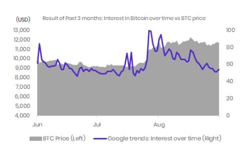 쟁글은 "쟁글 리서치에서는 비트코인과 이더리움과 관련해 일부 지표들이 8월 이후 가격 변동성이 확대될 것이라는 조짐을 이미 나타냈다"며 "대중의 관심도를 측정하기 위한 지표로 볼 수 있는 구글 트렌드 지수는 이미 8월 초에 정점을 기록한 이후 월말까지 하향세를 지속해왔다"고 설명했다.