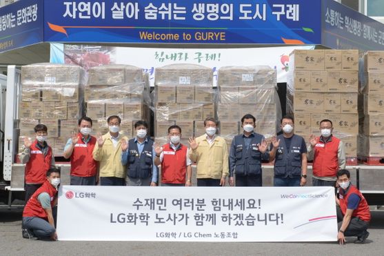 LG화학이 주요 사업장 소재 지역 수재민들에게 2억원 상당의 생필품 및 식료품을 전달했다.