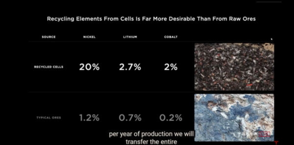 머스크는 배터리 원료인 니켈 등을 현지에서 구하고, 배터리 제조 과정에서 발생하는 부산물을 재활용 하는 등의 방법으로 배터리 가격을 낮춘다고 부연했다.