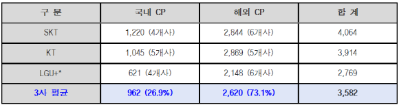 또 과기정통부가 이동통신 3사로부터 제출받은 올해 2분기 일평균 트래픽 자료에 따르면 트래픽 발생량 상위 10개 사업자 중 네이버, 카카오 등 국내 CP가 차지하는 비중은 26.8%인 반면, 구글 등 해외 CP가 차지하는 비중은 73.1%로 해외 CP의 비중이 국내 CP의 약 2~3배 수준으로 나타났다.