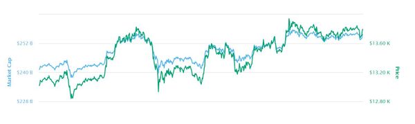 2일 코인마켓캡에 따르면 비트코인은 지난달 31일 장중 1만4028달러에서 거래되며 연고점을 경신했다. 이후 비트코인은 이날 오전 9시 20분 현재 1만4000달러보다 소폭 떨어진 약 1만3800달러에서 거래됐다.