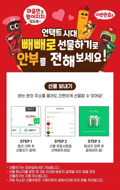 롯데제과는 언택트 빼빼로데이를 앞두고 적극적인 온라인 마케팅을 펼치며 특히 모바일 '선물하기'에 집중하고 있다고 9일 밝혔다.