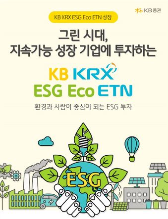 KB증권은 오는 12일 ESG 환경경영점수가 우수한 100개 종목에 투자하는 ‘KB KRX ESG Eco ETN’이 신규 상장한다. KB증권은 약 4주간 KB증권이 발행한 ETN 전 종목을 대상으로 거래 이벤트를 진행한다고 11일 밝혔다.