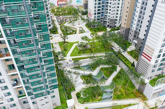 이에 롯데건설은 이 공간에 '리조트밸리'라는 조경 콘셉트를 도입해 녹음과 보행로가 겹쳐지는 산책로를 만들고 수목을 층층이 쌓아 외부에서도 산의 일부처럼 보이도록 계획했다. 공공보행통로에 다양한 수경시설과 휴게시설이 어우러져 '여행 같은 삶의 공간'을 구현한 점이 높이 평가됐다.