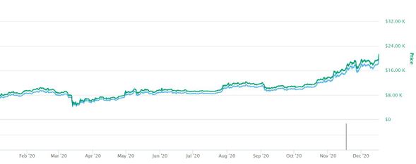 17일 코인마켓캡에 따르면 전날 비트코인 개당 가격은 사상 처음으로 2만달러(2182만원)을 넘어섰다. 이후 이날 오전 10시 40분 현재 비트코인은 글로벌 시장에서 2만1237달러(약 2321만원)에 거래되면서 최고가를 경신하고 있다.