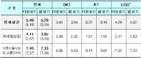 이통 3사 평균 다운로드 전송속도는 상반기(656.56Mbps) 대비 33.91Mbps 향상된 690.47Mbps다. 평균 업로드 전송속도는 63.32Mbps이다.