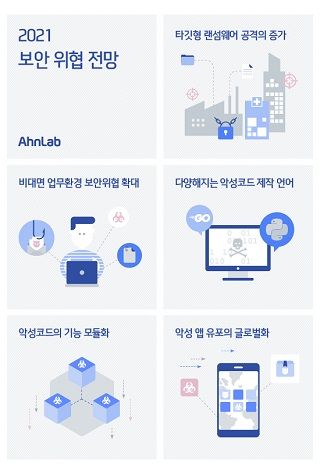 특히 보안관리에 취약한 중소기업들의 피해가 클 가능성이 높다. 지난 2020년에 이어 특정기업을 대상으로 한 타깃형 랜섬웨어 공격도 지속될 것으로 예측된다. 사회적 이슈 등을 활용한 악성앱 유포도 확대될 전망이다.