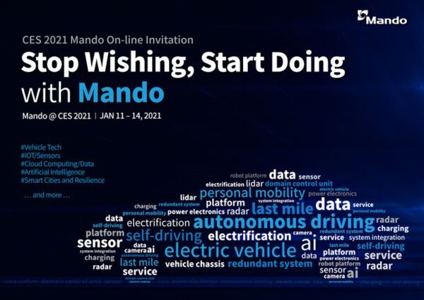 만도는 이번 CES에서 ‘공간의 자유(Space Freedom)’, ‘스마트 딜리버리(Smart Delivery)’ 등 만도와 함께 누리는 ‘자유(Freedom)’에 관한 주제를 설명한다. 또한 BbW(Brake by Wire), SbW(Steer by Wire) 등 ‘엑스 바이 와이어(X-by-Wire)’라는 ‘일렉트릭 초연결 (Electric Hyperconnectivity)’ 기술로 통합된 모듈이 운전자와 자율 교감하는 미래차 솔루션도 제시한다.