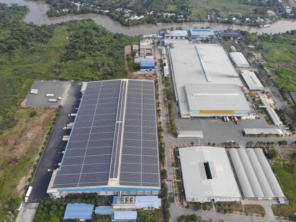 2만5000㎡ 넓이의 지붕에 1만880개의 태양광 모듈이 설치됐다. 단일 지붕 태양광 발전 설비 규모로는 베트남 최대 규모다. MWp는 최적의 조건에서 태양광 모듈이 최대로 낼 수 있는 발전능력을 의미한다.