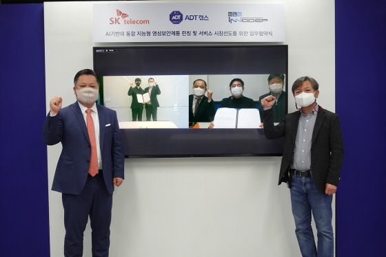 SK텔레콤은 ADT캡스, 국내 통합관제센터 기업 이노뎁과 인공지능(AI)기반 지능형 영상분석 솔루션 사업화를 위한 3사 협약을 체결했다고 17일 밝혔다.