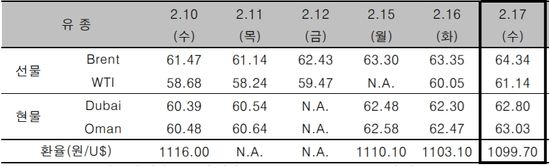 또한 최근 미국 남부 텍사스에 30년 만에 불어닥친 한파로 정전이 발생하며 모티바(Motiva)·엑손모빌(ExxonMobil) 등 400만 배럴 규모의 정제설비가 가동을 멈췄다. 정유 및 화학 설비가 집중된 미국 남부 지역은 이번 한파로 전력·용수·연료 공급 어려움으로 가동 중단하는 정제설비가 늘어나고 있는 것으로 알려졌다.
