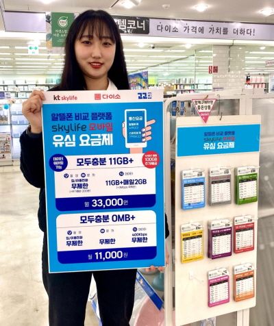 KT스카이라이프 알뜰폰 '스카이라이프(skylife) 모바일'을 전국 다이소 매장에서 만날 수 있다.