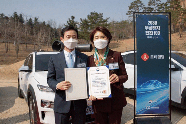 롯데렌터카와 SK렌터카는 서울 마포구 상암 문화비축기지 문화마당에서 열린 ‘한국형 무공해차 전환 100(K-EV100)’ 업종별 릴레이 선언식에서 보유 차량을 무공해차로 전환하는 캠페인에 동참하기로 했다고 26일 밝혔다.