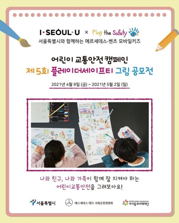 메르세데스-벤츠 사회공헌위원회(의장 토마스 클라인)는 서울특별시 및 사회복지법인 아이들과미래재단과 함께 어린이 교통안전 캠페인 ‘제5회 플레이더세이프티(Play the Safety) 그림 공모전’을 개최한다고 9일 밝혔다.