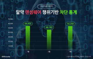보안 전문 기업 이스트시큐리티는 9일 자사의 백신 프로그램 알약을 통해 올해 1분기 총 15만4887건의 랜섬웨어 공격을 차단했다고 밝혔다. 일간 기준으로 환산하면 일평균 약 1720건의 랜섬웨어 공격이 차단된 것으로 볼 수 있다.