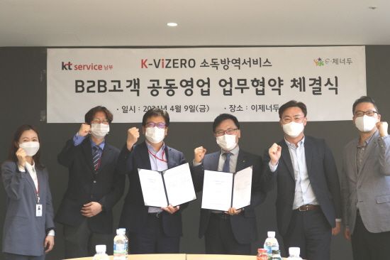 kt service 남부는 국내 최초 선택적 복지기업 이제너두와 케이바이제로(K-ViZERO) 소독살균 서비스 제공을 위한 업무협약(MOU)을 체결했다고 12일 밝혔다.