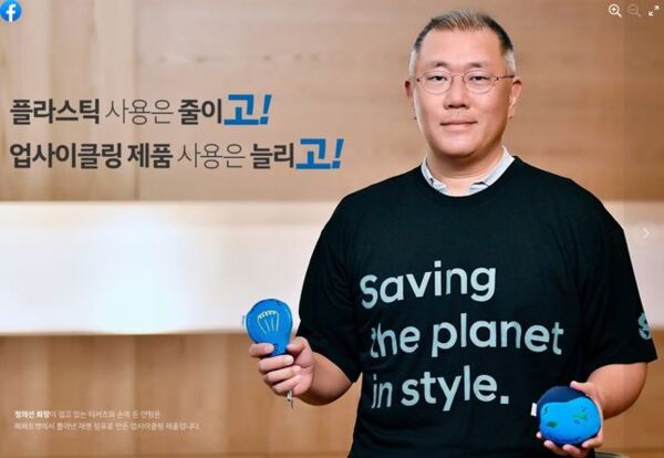 현대차그룹 공식 SNS 채널에 3일 게시된 메시지에서 정의선 회장은 ‘고고챌린지’ 참여를 통해 인류를 위한 플라스틱 줄이기 여정에 동참하게 됐다고 밝혔다. (URL : https://www.facebook.com/hyundaimotorgroup/posts/4268852746459502)