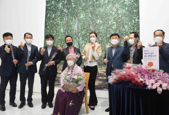 ㈜한진이 한진 소속 택배기사 이현영 작가(52)와 올해 94세를 맞은 그의 어머니, 김두엽 작가의 모자전(母子展) <우리 생애의 첫 봄> 개막을 기념해 6일 서울 중구 서소문동에 위치한 일우스페이스에서 기념행사를 진행했다.