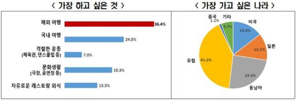 ◆가장 하고 싶은 것, 해외여행(36.4%) > 국내여행(24%) > 문화생활(19.3%)