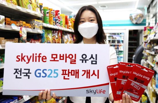 스카이라이프 알뜰폰 유심을 GS25 편의점에서 구입하고 스스로 5분 내 가입·개통할 수 있다.