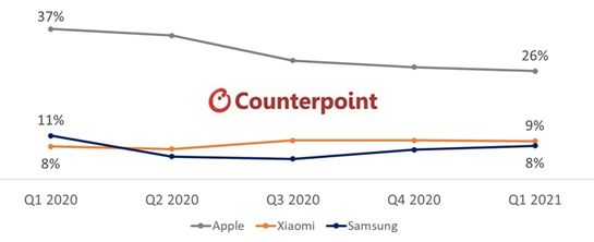 삼성전자는 올해 1분기 점유율을 확대하며 8%를 기록, 2위 샤오미(9%) 뒤를 바짝 쫓았다. 올해 초 갤럭시 버즈 프로(Galaxy Buds Pro)가 베스트셀링 모델 순위 3위를 차지했고, 직전 모델인 갤럭시 버즈 라이브(Galaxy Buds Live)와 플러스(Galaxy Buds Plus) 모델 역시 5~ 6위를 기록하는 등 세 모델 모두 좋은 성적을 거뒀다.