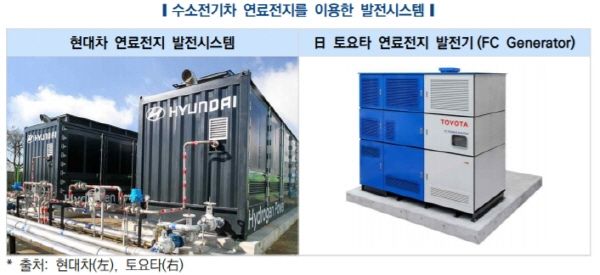 토요타는 수소차 미라이의 연료전지 시스템을 활용한 100kW급 발전기를 2019년 9월부터 운용하고 있다. 지난해 6월에는 부생수소를 이용한 50kW급 발전기 실증 작업에 나섰다.