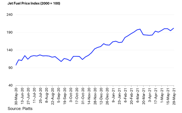 국내선 유류할증료는 8월에도 인하되지 않을 전망이다. 6월 국제유가는 배럴당 70달러를 웃돌고 있고, 사우디아라비아 아람코는 7월에 아시아 지역 원유 판매가격을 인상하기로 결정했다. 여객 회복이 감지되면서 항공유 가격은 국제유가보다 빠른 속도로 오르는 추세다.