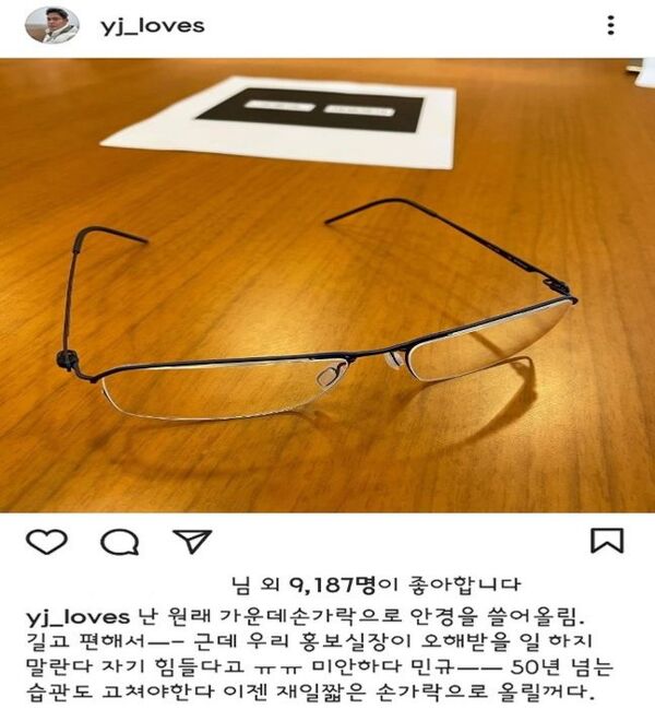 정 부회장은 8일 오후 5시경 자신의 인스타그램 계정에 "난 원래 가운데 손가락으로 안경을 쓸어 올림. 근데 홍보실장이 오해받을 일 하지 말란다. 50년 넘는 습관도 고쳐야 한다"는 내용의 게시글을 올렸다. 문제가 될 소지가 있는 글을 자제하겠다는 뜻을 피력한 것이다.