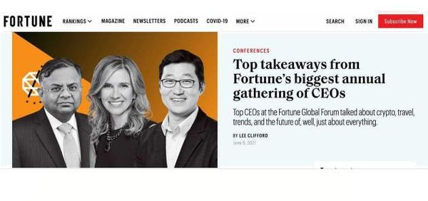 미국 경제지 포춘이 '2021 포춘 글로벌 포럼'에 주요 연사로 초청돼 강연한 김범석 의장을 집중 조명했다. 포춘은 "쿠팡은 올해 가장 화제가 된 기업공개(IPO)의 주인공"이라고 소개하며 쿠팡의 서비스정신과 혁신경영에 대한 김 의장의 답변을 조명했다.