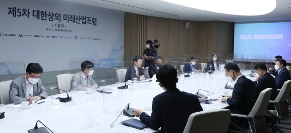 대한상공회의소가 17일 ‘제5차 미래산업포럼’을 열고 자동차산업의 디지털 전환과 탄소중립 현황을 점검했다. 정부에 과감한 정책 지원과 규제완화도 요청했다.