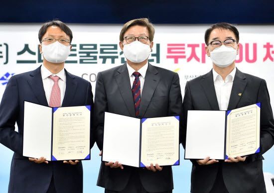 17일 부산광역시청에서 열린 쿠팡 부산 물류센터(FC) 건립양해각서 체결식에는 박형준 부산광역시장,하승철 부산진해경제자유구역청장, 박대준 쿠팡 신사업부문 대표가 참석했다.