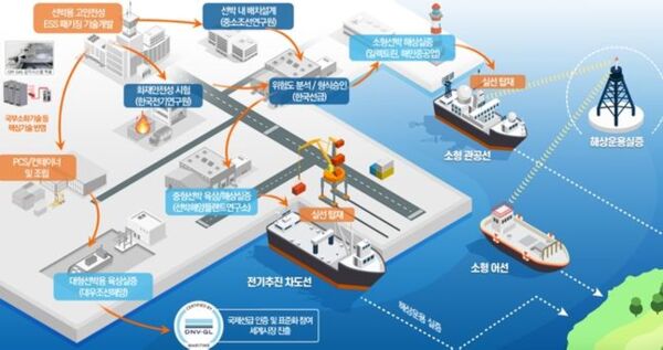 MWh급 선박에 탑재되는 고안전성 ESS를 개발하는 과제다. 향후 3년간 중대형 선박용(1MWh급)과 소형선박용(200kWh급)에 탑재되는 ESS 개발-시험평가-선급인증-탑재-안전성 입증이 진행된다.
